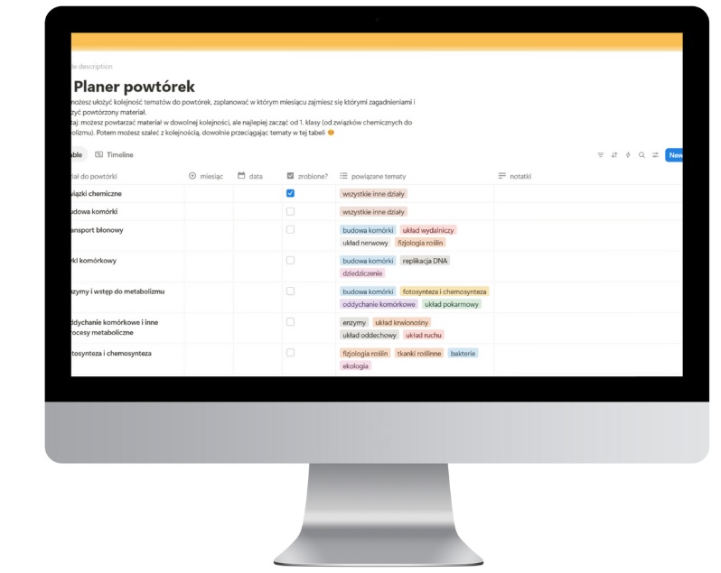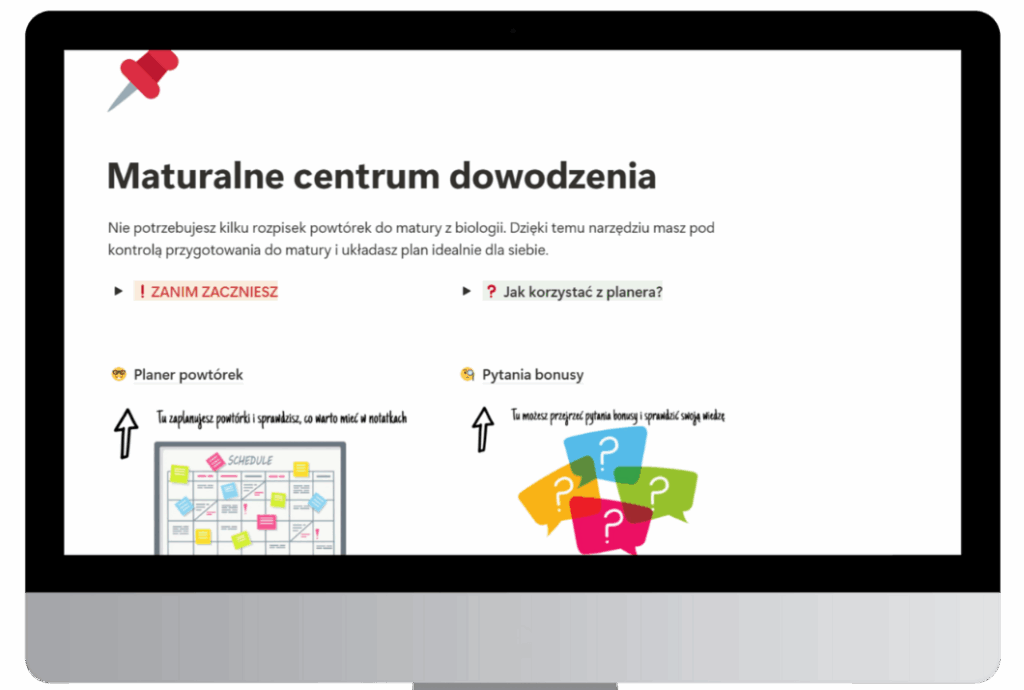 Rozłóż przygotowania w czasie, żeby matura nie zaskoczyła Cię w połowie materiału. Pamiętaj, żeby przy powtórkach trzymać się wymagań maturalnych, a nie fancy notatek znalezionych w internecie. Nie wiesz jak to zrobić? O powtórkach pisałam tutaj, a ostatnio stworzyłam świetne narzędzie, które umożliwi Ci planowanie powtórek do matury i dostosowanie ich do siebie. To w pełni personalizowane Maturalne Centrum Dowodzenia – szablon w Notion, dzięki któremu masz pod kontrolą powtórki do matury, wymagania maturalne i układasz sobie prace w czasie tak, żeby wyrobić się przed egzaminem. Udostępniam to za darmo – a do tego dołączam ponad 100 pytań bonusów, które pomogą Ci sprawdzić wiedzę.